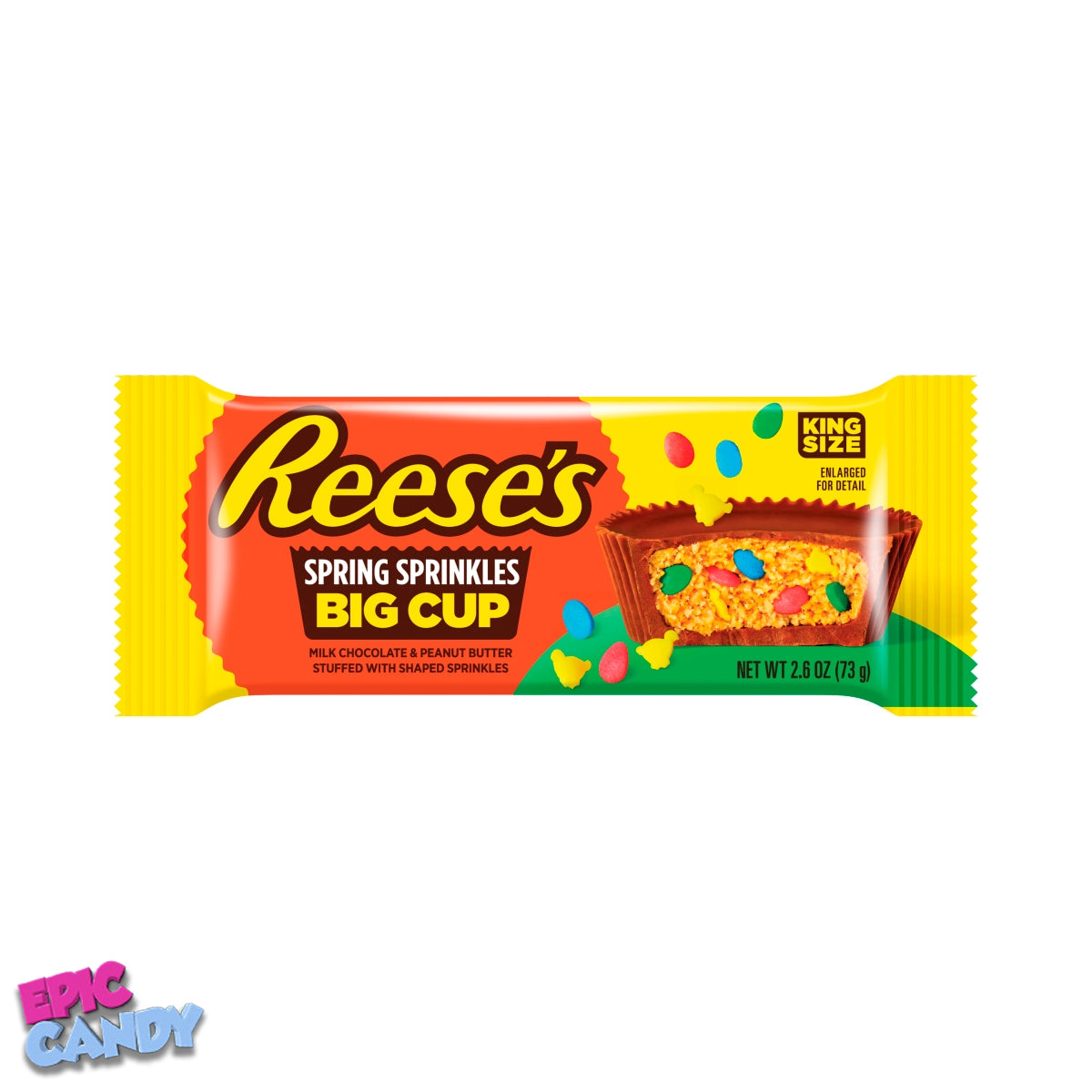 Enjoy the perfect combination of sweet and salty with Reeses Spring Sprinkles Big Cup! Indulge in the rich peanut butter filling, covered in creamy milk chocolate, and topped with festive spring sprinkles! Satisfy your craving (and your sweet tooth) with this delicious treat!