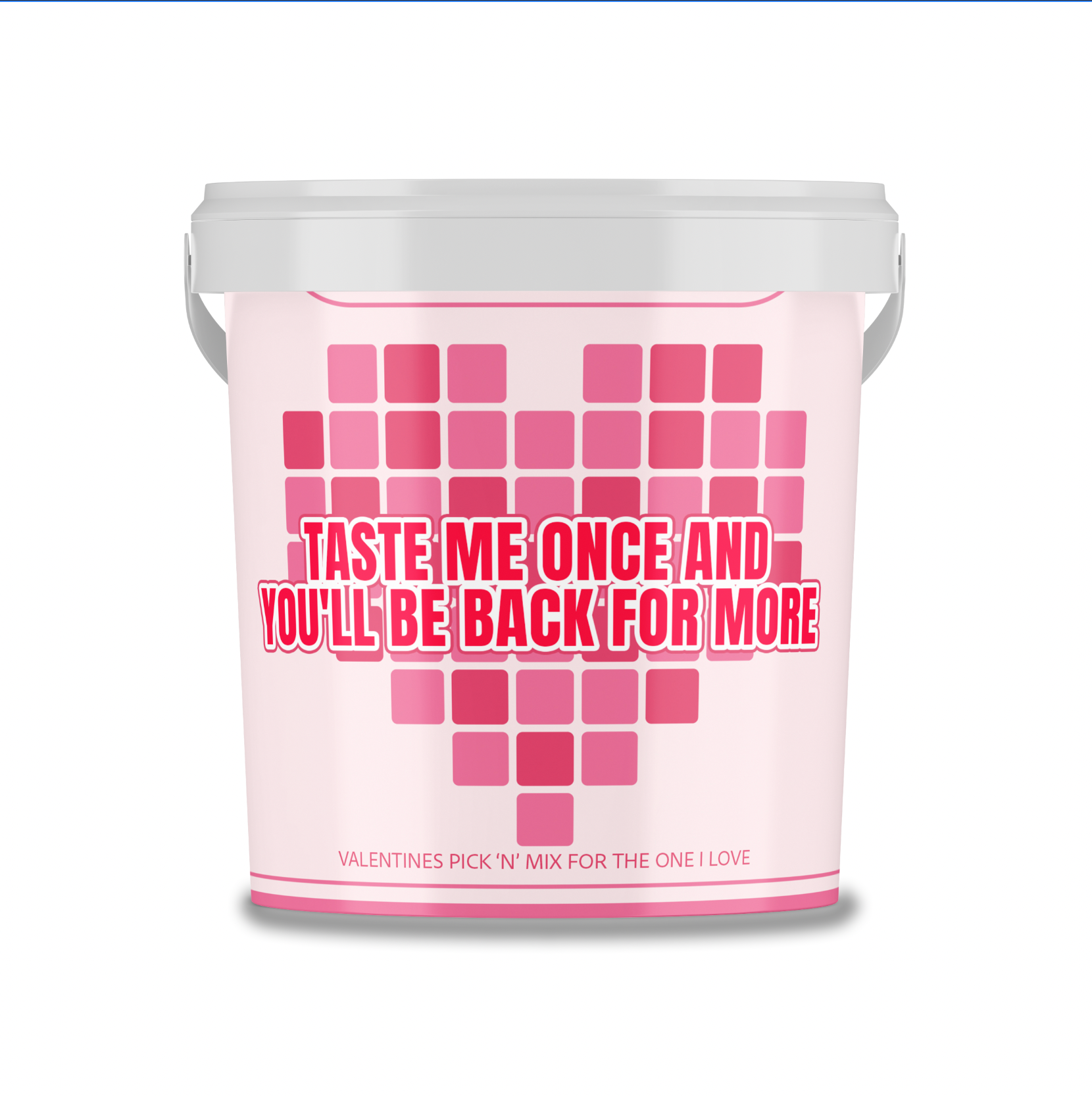 Valentines Themed Pick N Mix Sweet Bucket 800 g " taste me once and you'll be back for more".
